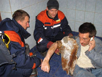 Работа спасателей осложнялась тем, что унитаз был чугунным, кроме того, он был забетонирован и обложен плиткой. Сотрудникам МЧС все же удалось выдолбить его из пола, однако с руки пострадавшего он все равно не снимался. Тогда, как сообщается, были использованы гидравлические ножницы и бензорез.