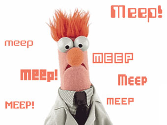 Слово "meep" появилось в детском телевизионном "Маппет-шоу", популярном в США и Великобритании в конце 1970-х годов. Один из персонажей, ассистент изобретателя доктора Бансена Бикер, произносил только это невнятное слово. В современном сленге оно может заменять практически любую часть речи и приобретать любое значение. Детьми и подростками оно используется в качестве односложного ответа на вопрос, вызвавший затруднения, например, о причине опоздания на занятия.