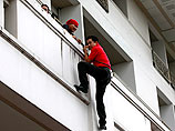 Один из них спустился с балкона гостиничного номера по веревке, остальные - вышли, прикрываемые толпой своих сторонников.