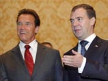 В не менее доброжелательной и непринужденной атмосфере прошли встречи российского президента также с губернатором Калифорнии и бывшей голливудской звездой Арнольдом Шварценеггером. На прощание Медведев процитировал одного из киногероев Шварценеггера - Терминатора: "I'll be back!" А затем добавил: "Hasta la vista, baby!" Это вызвало оживление и смех как бывшего киноактера, так и его окружения.