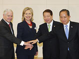 США вводят новые санкции против КНДР в ответ на политику Пхеньяна, заявила Хиллари Клинтон после переговоров с министром иностранных дел и министром обороны Южной Кореи. По ее словам, под санкции США подпадут операции КНДР по продаже и покупке оружия. Они также предусматривают замораживание банковских счетов индивидуальных лиц. "Эти меры не направлены против народа Северной Кореи", - подчеркнула госсекретарь США.