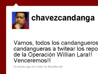 У микроблога Чавеса, открытом в апреле 2010 года, более 850 тысяч читателей, и он является самым популярным микроблогером страны. Twitter президента Венесуэлы привлекает особое внимание в связи с назначенными на 26 сентября парламентскими выборами в стране.