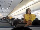 В это время из динамиков звучит серьезный голос, объясняющий пассажирам порядок действий при аварийной посадке. На такую творческую демонстрацию пассажиры ответили аплодисментами.