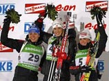 На 5,7 секунд от нее отстала олимпийская чемпионка Ванкувера немка Магдалена Нойнер, допустившая два промаха, а на третьем месте расположилась ее соотечественница Андреа Хенкель, допустившая лишь одну осечку, но проигравшая победительнице 15 секунд.