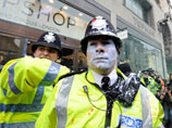 Между тем, не обошлось без инцидентов. Так, в кордоны полиции полетели бутылки с краской и аммиаком. Группа людей в черной одежде отделилась от общей демонстрации и принялась закидывать краской витрины магазинов и банков на улицах Оксфорд и Новый Бонд.