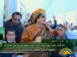 Каддафи улыбался своим сторонникам, жестикулировал, а находившиеся в школе люди скандировали антиамериканские и антизападные лозунги, сообщает РИА "Новости".