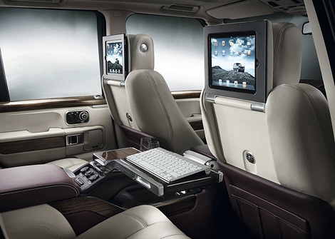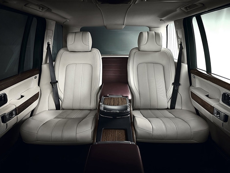 В задней части салона используется два раздельных кресла с электроприводом, между которыми установлена консоль со встроенным холодильником, держателями для бокалов и столиков для ноутбука. Кроме того, в базовую комплектацию особого Range Rover входят два планшета iPad, установленные в специальных креплениях в спинках передних кресел и поднимающиеся вровень сPподголовниками.