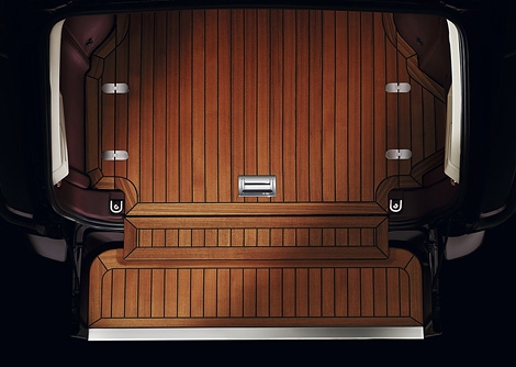 Сиденья в салоне внедорожника отделаны специально отобранной полуанилиновой кожей, а для обшивки дверей, верхней части приборной панели и рулевого колеса используется эксклюзивная кожа Oxford. Также в интерьере используются вставки из натурального дерева, а пол багажника выполнен из тика с металлическими и кожаными вставками на манер оформления дорогихPяхт.