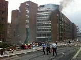 слышен второй взрыв, последовавший за первым, передает ИТАР-ТАСС. Но, сообщила впоследствии норвежская телекомпания NRK, оказалось, что за второй взрыв по ошибке приняли последствия первого: грохот от выпавшего из оконной рамы и разбившегося о мостовую стекла.