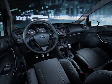 В стандартное оснащение спортивной Ford Fiesta входят фронтальные и боковые подушки безопасности, климат-контроль, обогрев передних кресел и MP3-аудиосистема с шестью динамиками. В качестве опции доступен электрообогрев лобового стекла, аудиосистема Sony с Bluetooth и голосовым управлением, система доступа в автомобиль без ключа, камера заднего вида, а также система стабилизации.