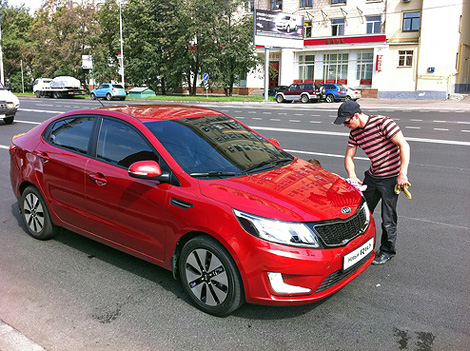 Агентство [Автосредаk опубликовала фотографии бюджетного седана Kia Rio, сделанные на улицах Москвы. Авторство снимков, по данным агентства, принадлежит порталу cars.ru, на котором такая публикация в настоящее время отсутствует, однако ее можно найти в кэше поисковой системы Google.