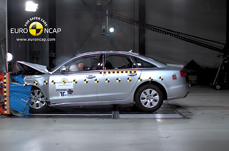 Седан Audi A6, оснащенный подушками безопасности, сила и степень раскрытия которых зависят от габаритов водителя и пассажира, показал хорошие результаты защиты пассажиров во фронтальном столкновении. Однако защита грудной клетки водителя при боковом краш-тесте, имитирующем удар о столб, была признана [удовлетворительнойk. Кроме того, после удара, который имитирует боковое столкновение с другой машиной, у Audi A6 оказалась открытой водительская дверь. За это специалисты Euro NCAP списали автомобилю несколько баллов.
