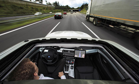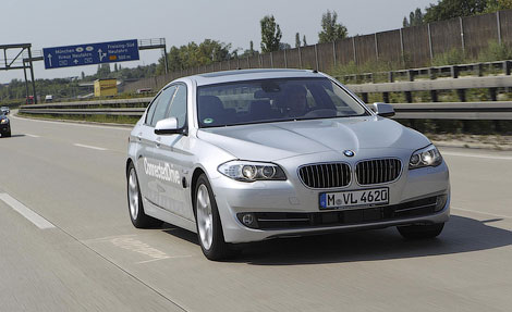 Компания BMW представила прототип седана 5-Series, оснащенного системой, которая позволяет автомобилю передвигаться в полностью автоматическом режиме, без участия водителя. Немецкий производитель рассчитывает, что после завершения разработки и отладки новинка позволит машинам самостоятельно разгоняться, тормозить, обгонять, выезжать с прилегающих дорог и вклиниваться в идущий поток, а также подстраиваться под дорожные условия.