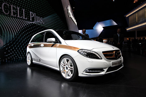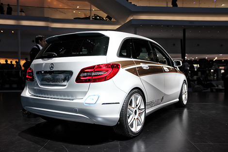 Компания Mercedes-Benz B-Class провела во Франкфурте презентацию концептуальной электрической модификации модели B-Class нового поколения E-Cell. По словам представителей немецкого производителя, в серийное производство аналогичный автомобиль будет запущен через три года. Новинка оснащена 100-киловаттным электрическим двигателем, питающимся от комплекта литий-ионных батарей, который позволяют автомобилю проехать без подзарядки около ста километров. Для [заправкиk аккумуляторов в движении используется трехцилиндровый бензиновый двигатель объемом один литр. При полном топливном баке запас хода такой машины увеличится до 600 километров. На стоянке B-Class E-Cell можно подзарядить от бытовой электросети или при помощи специальных высокомощных станций. С нуля до [сотниk новинка может разгоняться за 11 секунд. Максимальная скорость такой машины составляет 150 километров в час. Стоит отметить, что серийный электрический B-Class будет оснащаться системой, позволяющей с помощью домашнего компьютера или смартфона, имеющих доступ в интернет, проверять уровень зарядки батарей автомобиля и сверять прогнозируемый запас хода с маршрутом предстоящей поездки на карте.