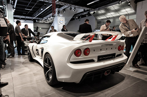 На моторшоу во Франкфурте компания Lotus представила обновленный спорткар Exige сразу в двух модификациях [заряженнойk и раллийной, которые получили названия S и R-GT соответственно. От предшественника автомобиль отличается другим оформлением передней и задней части кузова с новыми фарами головного света, иными бамперами, диффузорами и большими спойлерами.