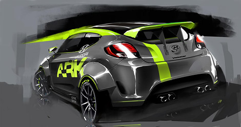Компания Hyundai представит на автошоу SEMA в Лас-Вегасе, которое пройдет с 1 по 4 ноября, тюнинговую версию асимметричного хэтчбека Veloster. По словам представителей ателье ARK Performance, занимавшемся переделкой автомобиля, новинка подходит для участия ралли и является своеобразным [мостом, связующим доступный спорткар и экстремальную машину для автоспортивных соревнованийk. Помимо агрессивного аэродинамического обвеса кузова с расширенными колесными арками, порогами и спойлерами, автомобиль получил форсированный до 210 лошадиных сил 1,6-литровый бензиновый двигатель, оснащенный фирменным турбонагнетателем с двойной [улиткойk ARK и высокопроизводительным интеркулером. Кроме того, ателье установило на хэтчбек и другие агрегаты собственной разработки, включая новый масляный радиатор, различные элементы гоночной подвески, выпускную систему, шестипоршневые тормозные механизмы и каркас безопасности.  В феврале текущего года компания Hyundai также представила вариант [Велостераk, подготовленного для соревнований по ралли-кроссу. Автомобиль, построенный совместно с одним из самых известных американских раллистов и дрифтеров Рисом Милленом, получил двухлитровый турбомотор мощностью 500 лошадиых сил, систему полного привода с передним и задним дифференциалом, секвентальную коробку передач, карбоновые и кевларовые кузовные панели, раллийную подвеску, шестипоршневые тормозные механизмы Alcon, систему пожаротушения и каркас безопасности. Обычный хэтчбек Hyundai Veloster впервые показали в январе на автосалоне в Детройте. Пока автомобиль доступен только со 138-сильным бензиновым мотором объемом 1,6 литра, однако в ближайшем будущем ожидается появление и более мощной турбированной модификации. Ранее также было объявлено, что [Велостерk будет продаваться и на российском рынке, однако точные сроки его появления в нашей стране и стоимость пока не сообщается.