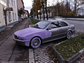 Перекрашенная BMW пропала с того места, где была оставлена, в ночь на понедельник. При этом за то время, что автомобиль находился на улице, его необычным видом не заинтересовались представители правоохранительных органов, неоднократно проезжавшие мимо сиреневой BMW.