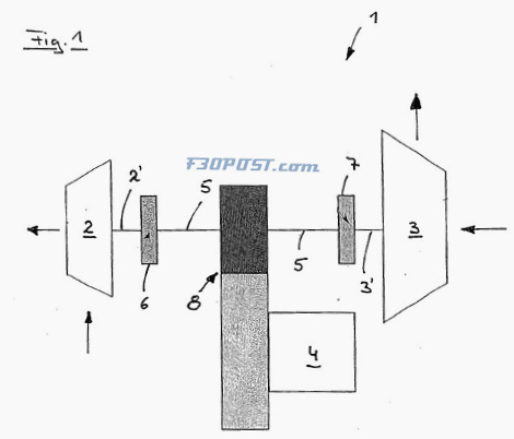 Компания BMW получила патент на электрический турбонагнетатель, который в ближайшем будущем будет устанавливаться на двигатели баварской марки. По слухам, новинка впервые появится на шестицилиндровом моторе с тремя турбинами для семейства M3 следующего поколения. Новинка представляет собой турбину, которая может раскручиваться как выхлопными газами, так и электромотором. При этом, в отличие от традиционных агрегатов, разработка BMW лишена жесткой связи между ротором и нагнетателем между ними появился дополнительный узел, включающий в себя электродвигатель и пару фрикционов. На холостом ходу или при движении накатом ротор отсоединяется от нагнетателя и вращается свободно, не увеличивая нагрузку на двигатель. Электродвигатель при этом тоже функционирует, но без нагрузки - электроника лишь подстраивает его обороты под скорость вращения вала нагнетателя. Когда водитель начинает движение или нажимает на педаль газа после движения накатом, сцепление между электромотором и компрессором (цифра 7 на схеме) замыкается. В этом случае компрессор раскручивается исключительно за счет электромотора, что обеспечивает высокую отзывчивость двигателя и позволяет избежать турбоямы.  1) схема турбины. 2) турбина. 2') ось турбины. 3) нагнетатель 3') ось нагнетателя. 4) электромотор. 5) вал турбины. 6) фрикцион для турбины. 7) фрикцион для нагнетателя. 8) привод