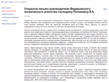 "Открытое письмо руководителю Федерального космического агентства господину Поповкину В.А. на сайте было размещено ошибочно Данное письмо предназначалось для публикации на внутреннем сайте Корпорации".