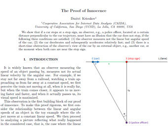 Физик из Калифорнийского университета Дмитрий Крюков сумел избежать штрафа за нарушение правил дорожного движения, доказав свою невиновность с помощью четырехстраничного научного отчета о произошедшем на дороге. Историю Крюкова публикует International Business Times. Ученый был вызван в суд за то, что во время движения не остановился у знака "Стоп".