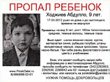 "Нам поступили сведения из полиции, что пропал мальчик по имени Абдулла Ходжиев. Он потерялся еще 17 апреля. Сегодня мы приступаем к поисковым работам", - сказал собеседник агентства.