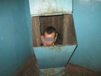 Житель Тюмени, скрываясь от подруги, застрял в мусоропроводе, сообщается 17 мая на сайте регионального управления МЧС.