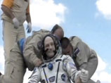 Американца Дональда Петита извлекают из капсулы после успешного приземления