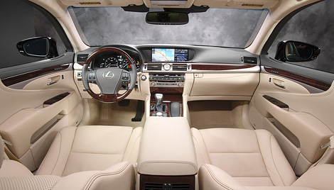 После обновления на Lexus LS появятся полностью светодиодные фары головного света, правда, лишь в качестве опции, а обычные фары научатся автоматически переключаться с дальнего на ближний свет в случае приближения встречного автомобиля. Еще новшества в списке опций и базового оборудования это система слежения за разметкой и слепыми зонами, адаптивный круиз-контроль и система минимазации последствий аварии, четырехзонный климат-контроль и аудиосистема Mark Levinson с 19-ю динамиками.