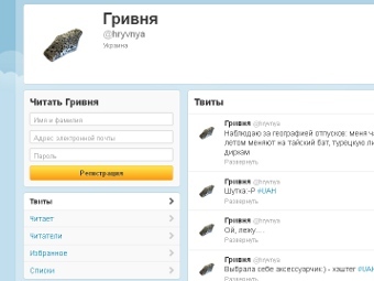 7 августа в твиттере появился аккаунт пользователя под ником "Гривня", который пишет от имени украинской валюты.