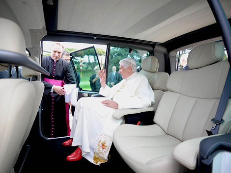 Один из автомобилей предназначен лично для папы. Кузов машины выкрашен в белый цвет, а двери украшены папскими гербами. Этот электромобиль, по задумке представителей Renault, предназначается для поездок понтифика по летней резиденции.