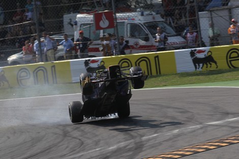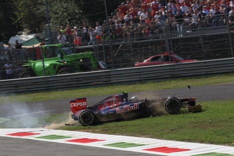 Пилот команды Scuderia Toro Rosso Жан-Эрик Вернь не получил травм в аварии на девятом круге Гран-при Италии Формулы-1. Болид француза развернуло на торможении перед первым поворотом, после чего машина подпрыгнула на бордюре, пролетела несколько метров и жестко приземлилась. Спортсмен смог самостоятельно покинуть кокпит, однако его сразу же доставили в медицинский центр. [У меня немного болела спина и голова, но в остальном все в порядке, рассказал Вернь в беседе с корреспондентом Autosport. Я не знаю, почему я вылетел. Все, что я помню это то, что сразу после нажатия на педаль тормоза я потерял контроль над задней частью автомобиля. Я почувствовал серьезный удар, когда машина упала на землю. В этом месте очень высокие поребрики, так что мне повезло, что болид не перевернулсяk.